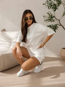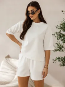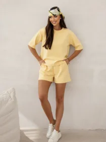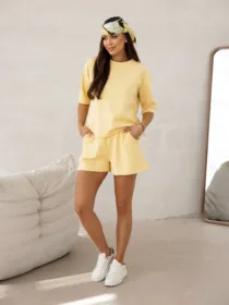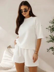 Letni komplet damski z masełka w prążek – miękki, wygodny i gotowy outfit na co dzień. Idealny do sprzedaży w butikach.