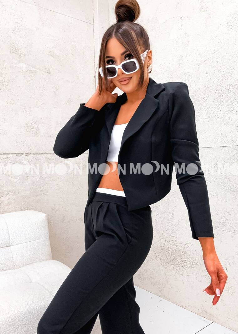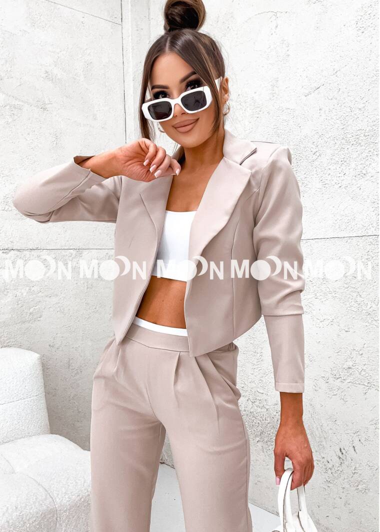 Komplet elegancki z marynarką Perfect z hurtowni odzieży damskiej MOON to idealna propozycja dla Twojego butiku, łącząca w sobie polską jakość wykonania, komfort noszenia i nowoczesny, elegancki design. Luźne spodnie z szeroką nogawką i wygodną gumą w pasie oraz krótka, stylowa marynarka w jednolitej kolorystyce to must-have w garderobie każdej kobiety ceniącej sobie styl i wygodę. Dostępny w wielu modnych kolorach, z pewnością stanie się hitem w Twojej ofercie. Nie czekaj, wzbogać swój asortyment o ten wyjątkowy komplet!