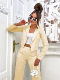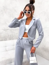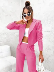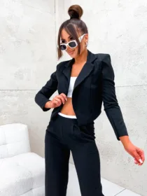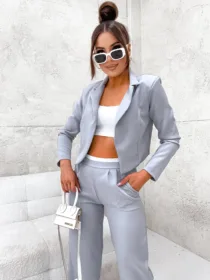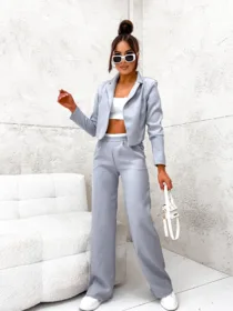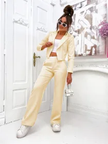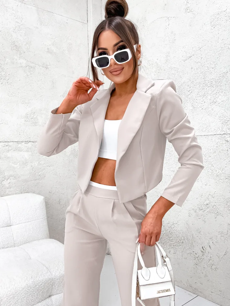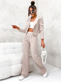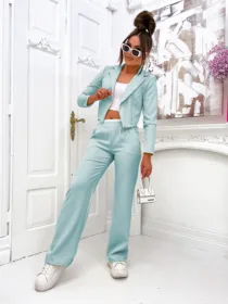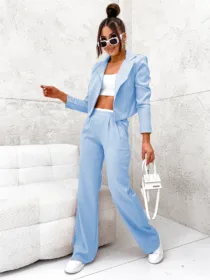 Komplet elegancki z marynarką Perfect z hurtowni odzieży damskiej MOON to idealna propozycja dla Twojego butiku, łącząca w sobie polską jakość wykonania, komfort noszenia i nowoczesny, elegancki design. Luźne spodnie z szeroką nogawką i wygodną gumą w pasie oraz krótka, stylowa marynarka w jednolitej kolorystyce to must-have w garderobie każdej kobiety ceniącej sobie styl i wygodę. Dostępny w wielu modnych kolorach, z pewnością stanie się hitem w Twojej ofercie. Nie czekaj, wzbogać swój asortyment o ten wyjątkowy komplet!