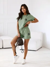 Komplet z szortami MOON to idealna propozycja dla Twojego sklepu online e-moon.pl, łącząca w sobie komfort noszenia, modny miejski styl i wysoką jakość wykonania. Wyprodukowany w Turcji z elastycznej i przyjemnej w dotyku dzianiny, składający się z funkcjonalnych szortów z kieszeniami i wygodną gumą w pasie oraz modnej koszulki oversize z krótkim rękawem, dostępny w wielu atrakcyjnych wariantach kolorystycznych, z pewnością przypadnie do gustu Twoim klientkom ceniącym sobie wygodę i nowoczesny look na co dzień. Nie czekaj, wzbogać swoją ofertę o ten bestsellerowy model i zapewnij swoim klientkom komfort i styl w najlepszym wydaniu!