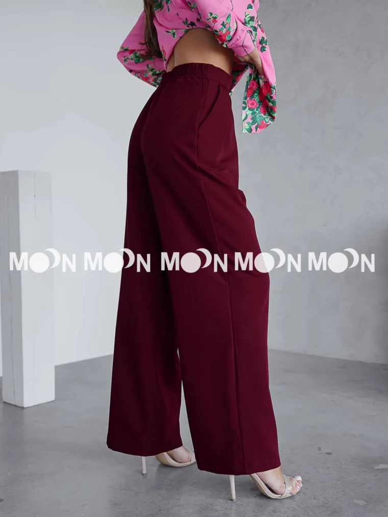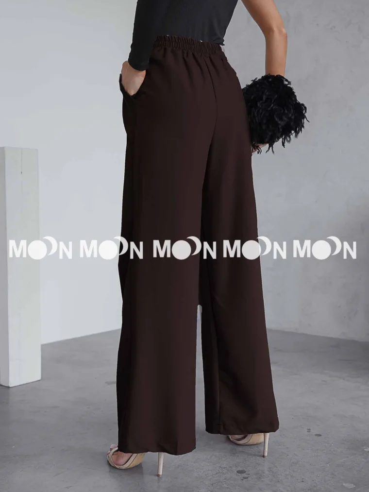 Odkryj spodnie „Elegance” – uniwersalny model z szerokimi nogawkami i zaszewkami. Z tyłu w pasie mają gumkę, a po bokach praktyczne kieszenie. Wyprodukowane w Polsce z wysokiej jakości materiału (65% poliester, 35% wiskoza), są idealne zarówno na co dzień, jak i na specjalne okazje.