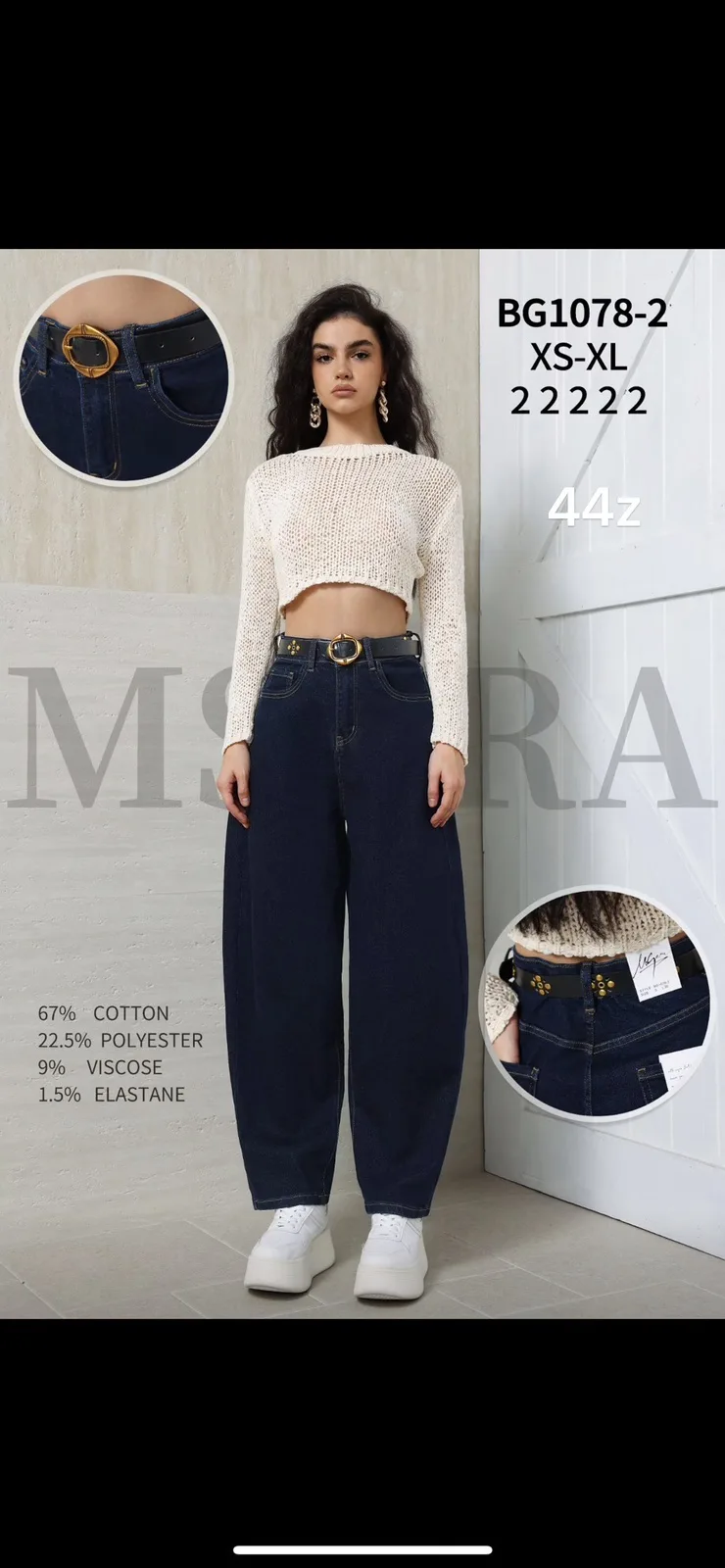 67% COTTON, 22,5% POLYESTER, 9% VISCOSE, 1,5%ELASTANE