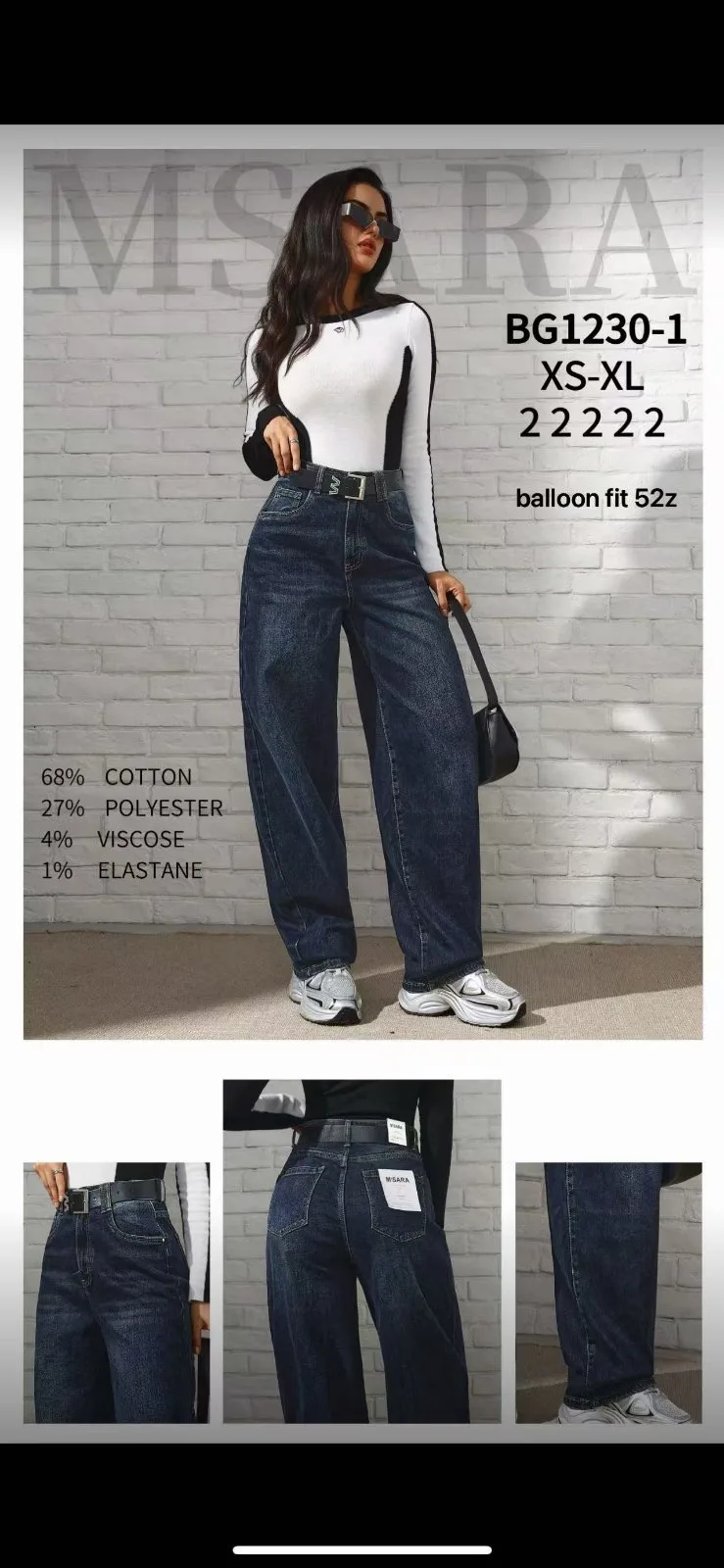 68% BAWELNA, 27% POLYESTER, 4%VISCOSE, 1%ELASTANE