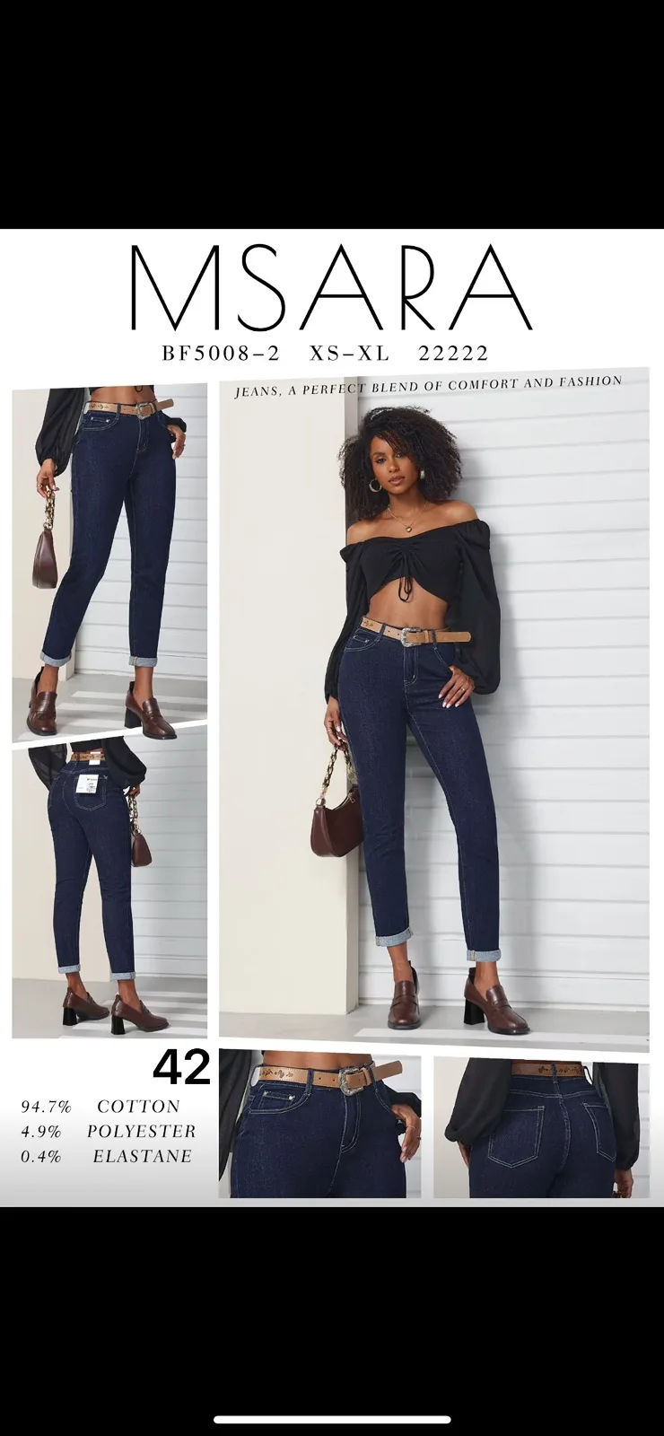 94,7% COTTON, 4,9% POLYESTER, 0,4%ELASTANE