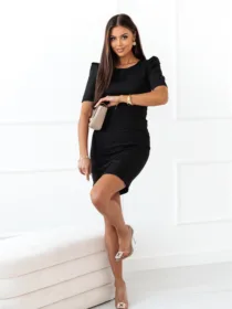 Elegancka sukienka wizytowa o dopasowanym kroju i subtelnie podkreślonej linii ramion. Model idealny do butików odzieżowych na sezon komunijny, weselny i okolicznościowy. Fason sprzedażowy, ponadczasowy i bezpieczny w rotacji.