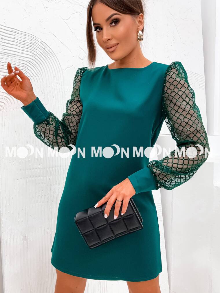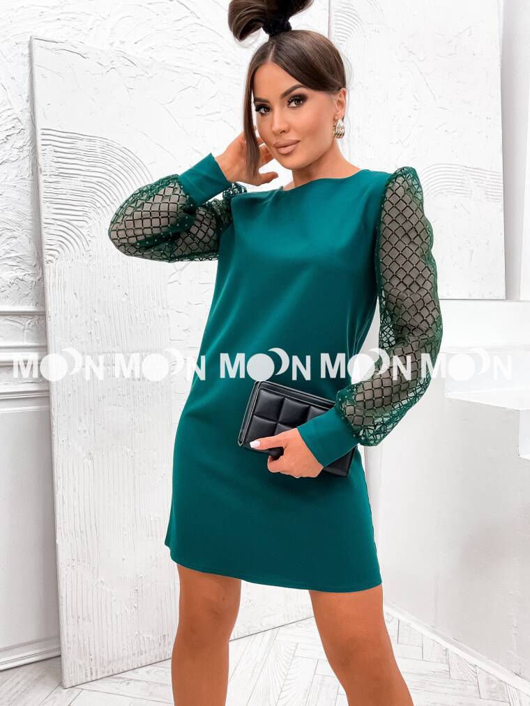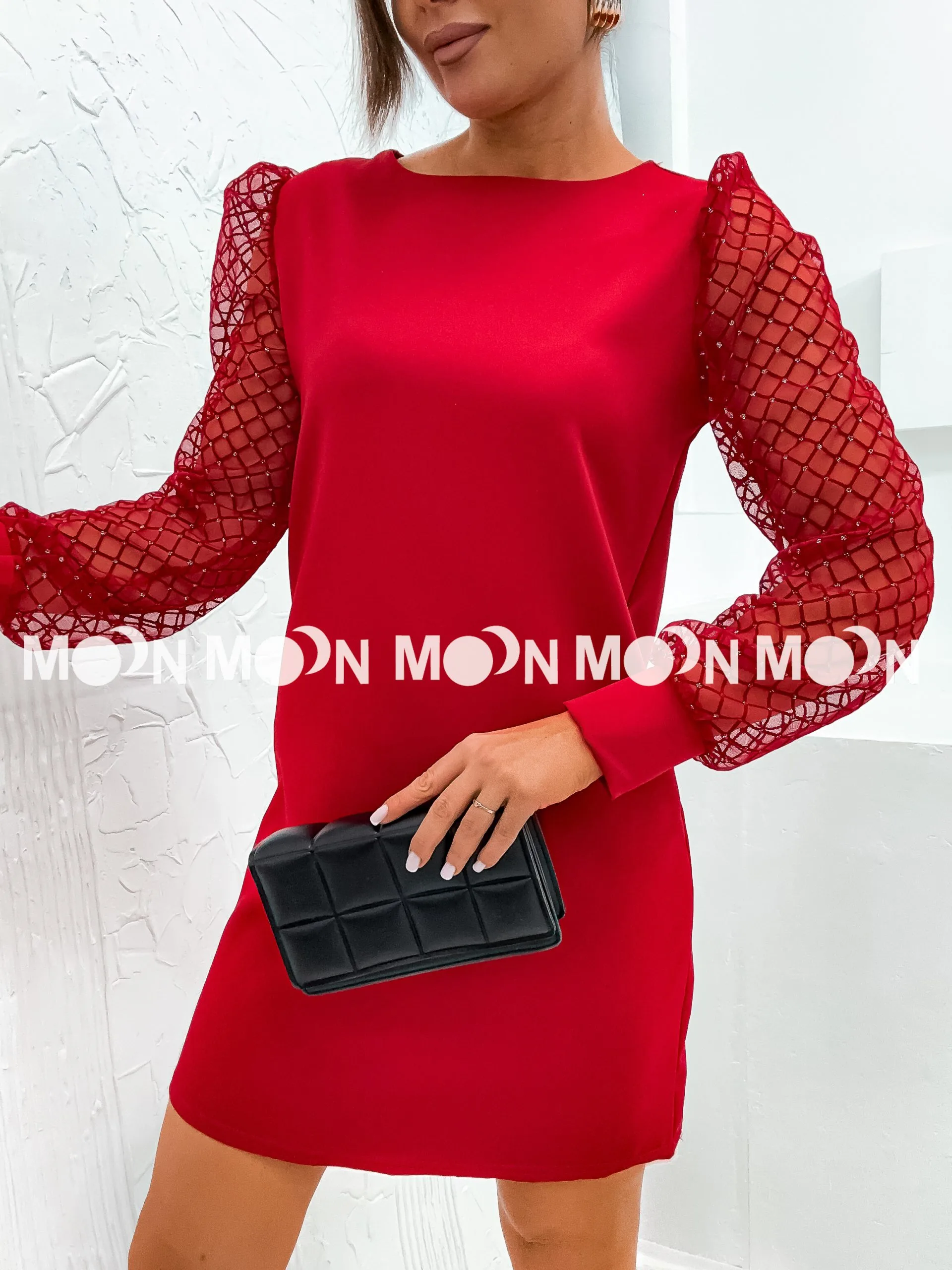 Elegancka sukienka mini idealna na wyjątkowe okazje, która jest gwarancją pewnej sprzedaży! Posiada ponadczasowy krój z okrągłym dekoltem. Wyróżniają ją ozdobne rękawy z mankietami, bogato zdobione luksusowymi perełkami. Skład: poliester, elastan. To polski produkt, w którym każda kobieta poczuje się jak Królowa!