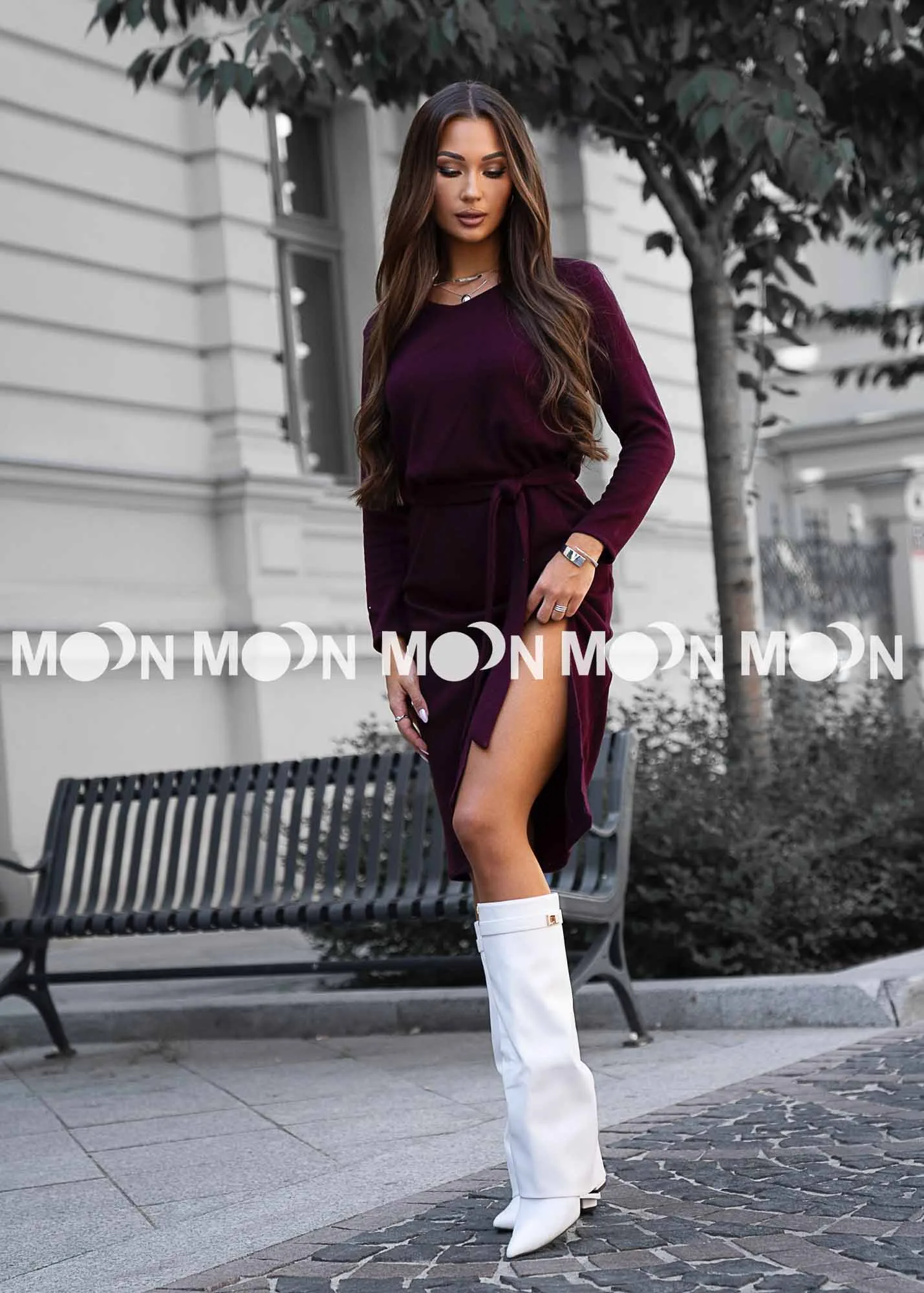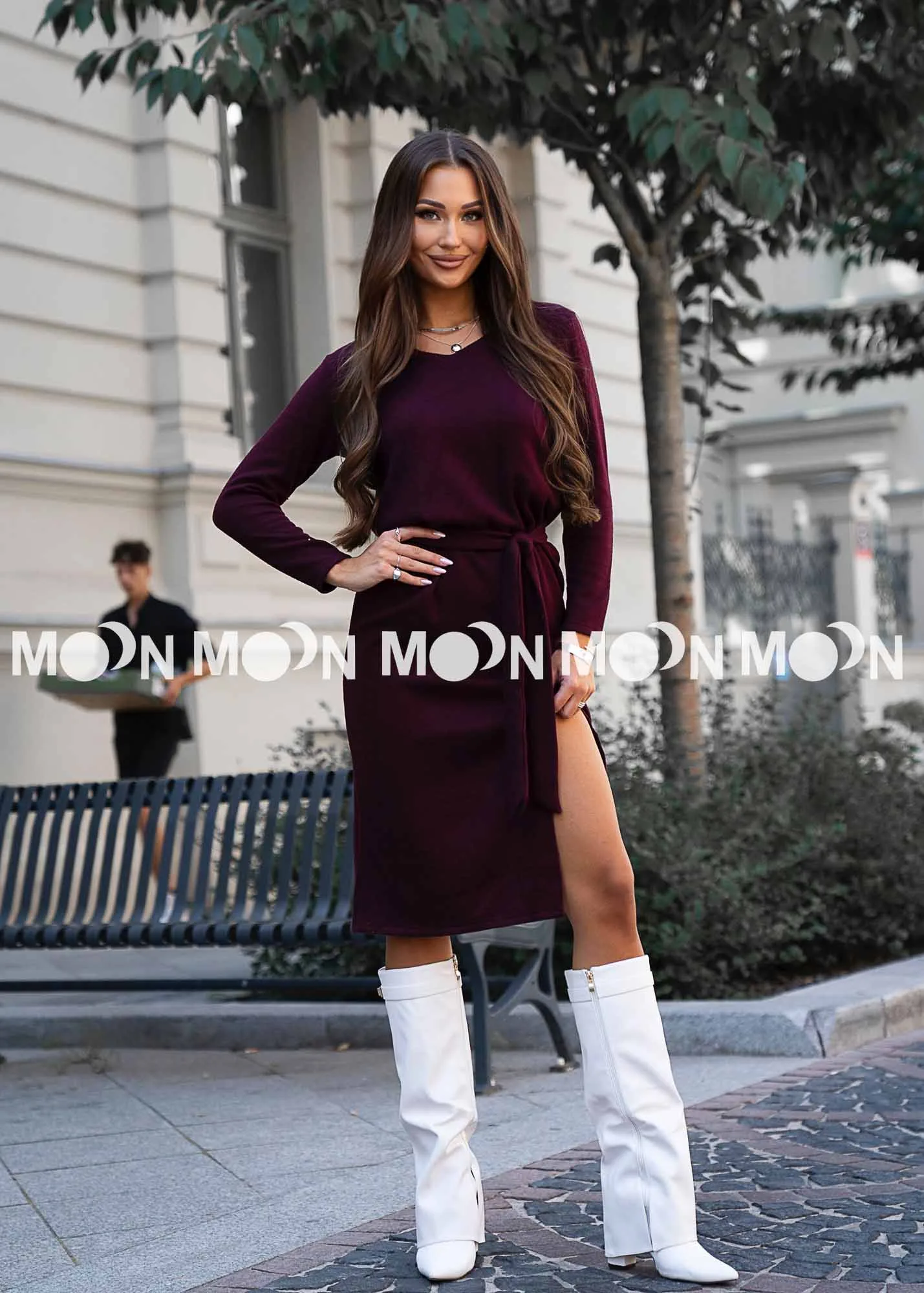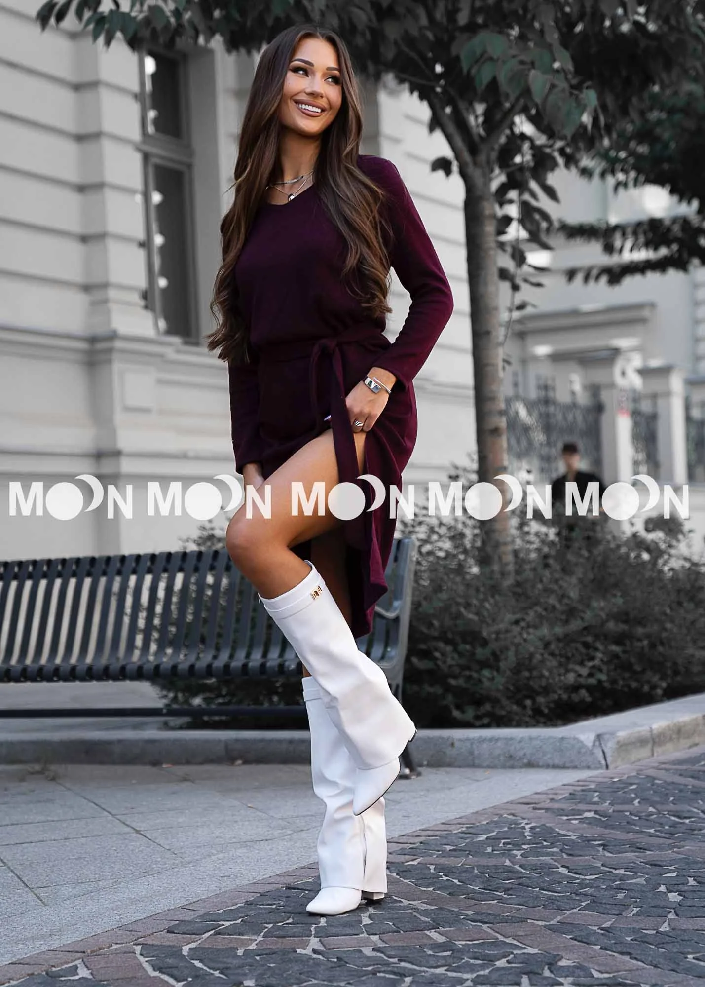 Sukienka swetrowa z paskiem w talie Lucky ecru