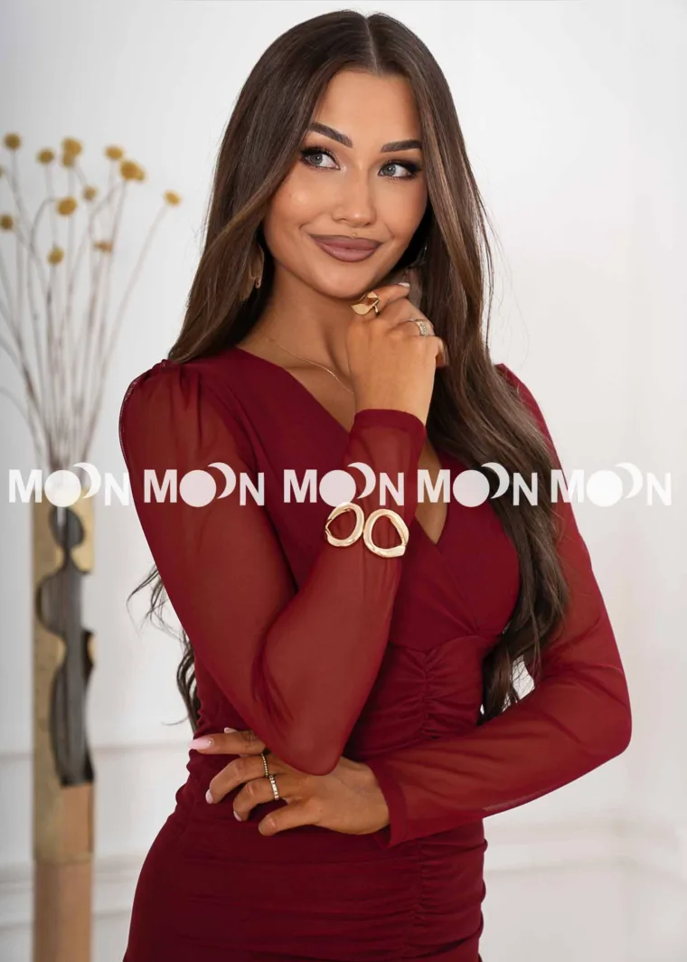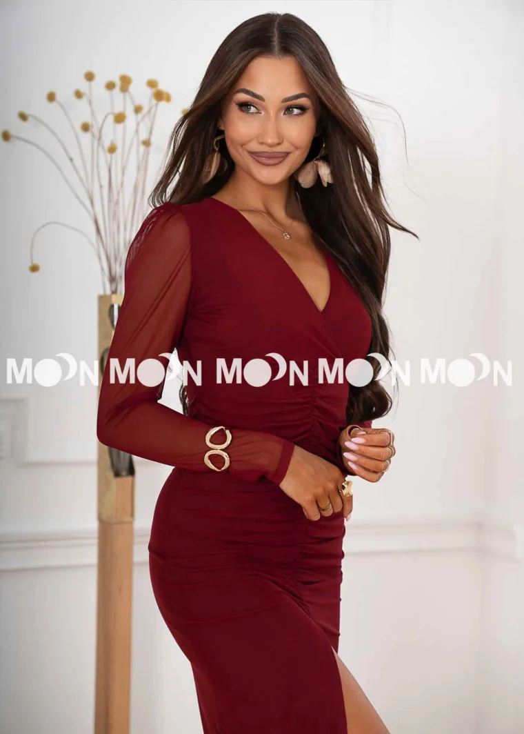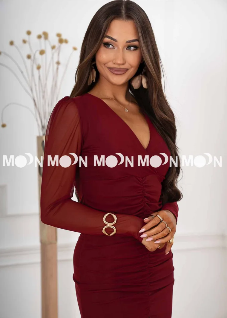 Elegancka sukienka z marszczeniem CLASSY bordowa