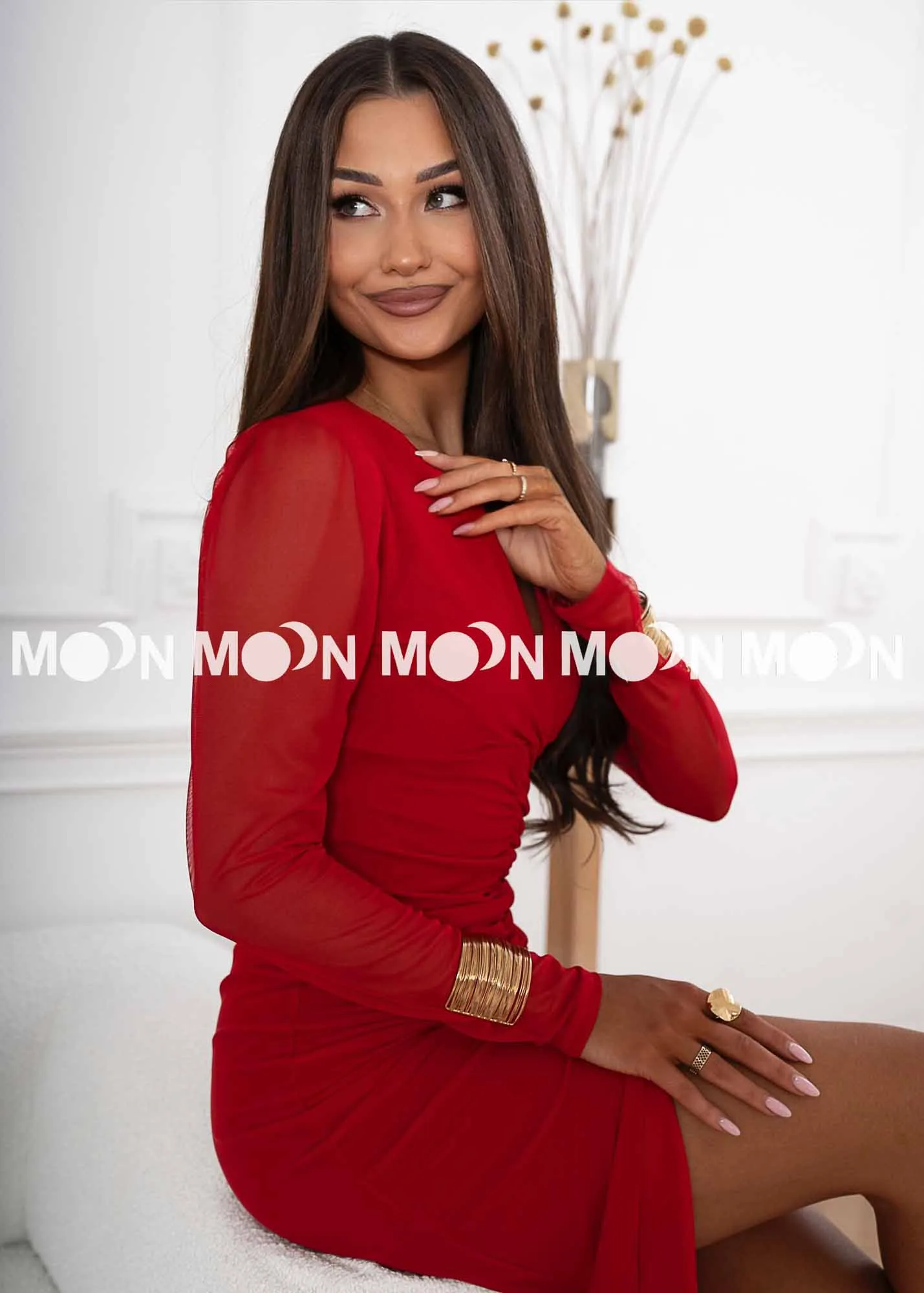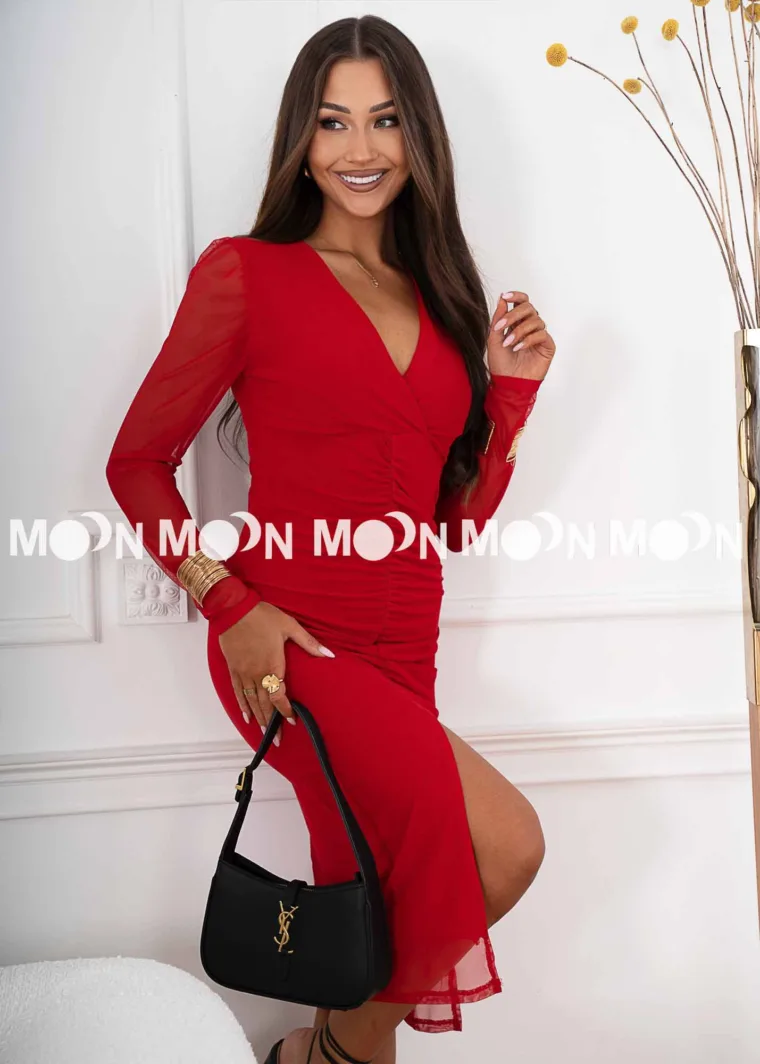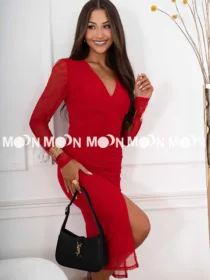 Elegancka sukienka z marszczeniem CLASSY czerwona