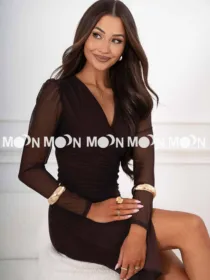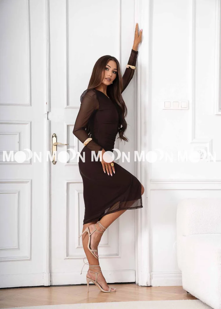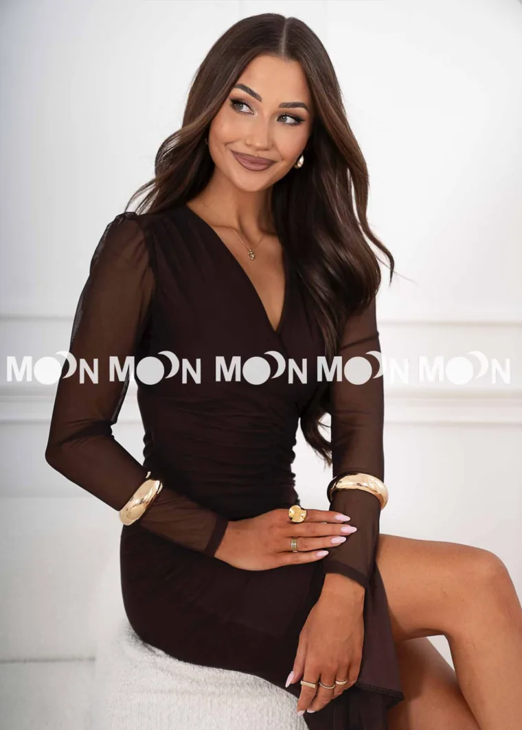 Elegancka sukienka z marszczeniem CLASSY czekoladowa