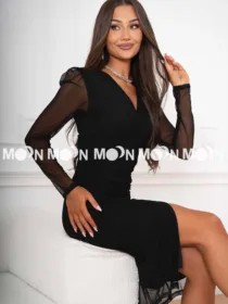 • Zmysłowe Detale: Dekolt V oraz długie rękawy i dół wykonane z prześwitującej siateczki.