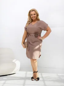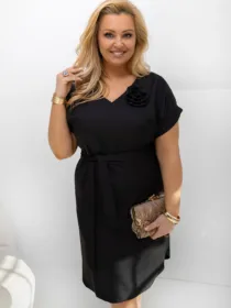 Sukienka z paskiem i ozdobną różą ROSE PLUS SIZE